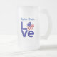 Die mattierte Glasbierfahne der Tasse zeigt eine herzförmige Fahne der USA, die für das O in der LIEBE in blauen Buchstaben verwendet werden. Oben ist ein Ort für einen Namen. Fügen Sie dem Gegenstand eine personalisierte Touch hinzu oder fügen Sie einen anderen Namen für ein individuelles Geschenk hinzu. Sie können den Namen aus der Tasse entfernen, wenn Sie nur das Wort LIEBE mit der herzenförmigen USA Flag haben möchten. Schönes Geschenk für die Hauswärmung. Spaß Geschenk für die amerikanischen Patrioten in Ihrem Leben. Kann verwendet werden, um den Unabhängigkeitstag oder 4. Juli zu feiern.
