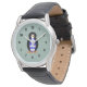 Uhr, Klassische Damenuhr mit schwarzen Lederarmband