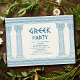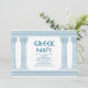Elegante griechische oder römische Toga-Geburtstagsfeier mit eleganten Tempelsäulen und griechischem Mäander-Muster in Blau. Individuelles Produkt für ein unvergessliches Fest. Ideal für Hochzeiten, Verlobungen, Graduiertenfeiern, Jubiläen, Termine, Bachelorette und Geburtstagspartys. Bitte Karo der passenden Kollektion für KOORDINIERENDE GEGENSTÄNDE. Originale Kunstwerke von PUPSIKU STUDIO. 100% einzigartige Produkte.