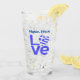 Trinkglas besitzt eine herzförmige Flagge Griechenlands, die für das O in der LIEBE verwendet wird. LIEBE wird in blauen Buchstaben angezeigt. Oben ist ein Ort für Ihren Namen. Fügen Sie dem Gegenstand eine personalisierte Touch hinzu oder fügen Sie einen anderen Namen für ein individuelles Geschenk hinzu. Toast Oxi Day!