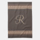 Meander Elegante, klassische griechische Hauptranddekoration mit Monogramm und geometrischen Streifen Dekoration auf dunkelbraunem Hintergrund. Tolle Geschenkidee für Geburtstage, Weihnachten oder einfach nur zu überraschen Ihren Lieben. Es ist einfach, es zu personalisieren und die Hintergrundfarbe zu ändern, um dem Design mit Ihrer Wahl einen anderen hinzuzufügen.