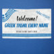 Griechenland oder jedes griechische Themenereignis Begrüßungsbanner mit der Flagge Griechenlands, Willkommen auf Griechisch und eine antike Landkarte Griechenlands verblasst im Hintergrund. Bearbeiten Sie alle Texte für Ihr griechisches Fest, Wiedersehen, Schule oder Klassenzimmer.