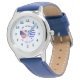 Kinderuhr aus Edelstahl mit blauem Lederarmband
