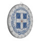 In diesem Design findet sich das Wappen Griechenlands (offiziell als Hellenische Republik bekannt), eines Landes in Südosteuropa. Die Hauptstadt Griechenlands ist Athen, die zugleich die größte Stadt des Landes ist, gefolgt von Thessaloniki. Weitere wichtige Städte in Griechenland sind Patras, Piräus, Larissa, Heraklion, Peristeri, Kallithea, Acharnes, Kalamaria, Nikaia, Glyfada, Volos, Ilio, Ilioupoli, Keratsini, Evosmos, Chalandri, Nea Smyrni, Marousi, Agios Dimitrios, Zografou, Galeo, Nea Ionia, Ioannina, Palaio Faliro, Korydallos, Trikala, Vyronas, Agia Paraskevi, Galatsi, Agrinio, Chalcis, Petroupoli, Serres, Alexandroupoli, Xanthi, Katerini, Kalamata und Kavala. Das Wappen besteht aus einem weißen griechischen Kreuz auf einem blauen escutcheon (ein technischer Begriff für ein heraldisches Schild), umgeben von zwei Lorbeerzweigen.