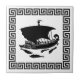 Klassischer griechischer Schlüsselentwurf mit griechischem Segelschiff und spielerischen Delphinen.