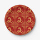 Griechischer Zierrahmen Gold Schlange Muster Rot Pappteller