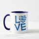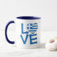Wort "LIEBE" mit einer Herzform mit der griechischen Flagge und 3D-Schattierung. Benutzerdefinierter Text rechts.