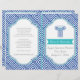 Griechisches Hauptmuster und Blau, Aquakultur Grecian Hochzeitsfeier und gefaltetes Party mit einem Rahmen mit blauer und aqua Kontur, einem Rahmen von griechischem Schlüssel oder Meander oder griechisches Freibordmuster in Blau und Weiß, einem türkisfarbenen Banner und einer blauen, aqua griechischen Säule. Text in grau. Dieses elegante, moderne Design mit Vintagen und antiken Elementen eignet sich für griechische und/oder griechische Hochzeitsfeiern, egal wo sie in Griechenland oder anderswo stattfinden. Man muss sich in der Mitte falten, um ein gefaltetes Programm zu haben. Wählen Sie nur den Papierwerttyp aus, der sich gut faltet.