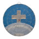 Ein Kreuz auf einer weißen Kirche gegen den blauen Himmel. Das Bild wurde auf der Insel Naxos, Griechenland, aufgenommen ©Angelika Stern