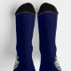 Griechisches Muster in blauen und schwarzen Socken der Crew. Eine griechische Göttin auf der einen Seite!