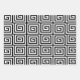 Retro Geometric Design in Schwarz und Weiß. Der "griechische Schlüssel", auch bekannt als "Mäander", ist ein sich wiederholendes geometrisches Motiv, das seit Jahrhunderten in Gebäude, Dekorationskunst, Schmuck und sogar Kleidung verwendet wird. Das Muster kann in verschiedenen Formen gefunden werden. Es handelt sich um ein Grundband, das aus kurzen horizontalen und vertikalen Linien besteht, die rechtwinklig miteinander verbunden sind.