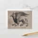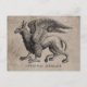 Griffin mythische Kreatur im Schwarz-Weiß-Kopperplatten-Set auf Vintagem Grunge-Papier mit schwachen Schriften und Schmuckstücken. Personalisieren Sie Ihre Daten mit Ihrem Namen oder Ihrer Nachricht.