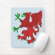 Ein heraldischer Greifen taucht in den Weihnachtsfarben Rot und Grün in diesem originellen Design von Richard H. Fay auf.