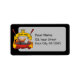 Grillgrill über flammender Holzkohle, Scrollbanner mit individuellem Text über Gabel und Spatel.