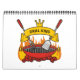 Grillgrill über flammender Holzkohle, Scrollbanner mit individuellem Text über Gabel und Spatel.