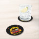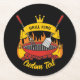 Grillgrill über flammender Holzkohle, Scrollbanner mit individuellem Text über Gabel und Spatel. Benutzerdefinierte Hintergrundfarbe. Benutzerdefinierter Untertext.