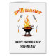 Eine Tageskarte für einen Schwiegersohn, der Lieben grillen. Ein rauchiges, mouthwässriges Design mit Grillvorder und Mitte, Flammen im Hintergrund. "Grill master" nimmt das Rampenlicht - genau wie der Vater, wenn er hinter dem Grill ist!