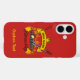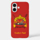 Grillgrill über flammender Holzkohle, Scrollbanner mit eigenem Text über gekreuzte Zungen und Pinsel. Benutzerdefinierte Hintergrundfarbe. Benutzerdefinierter Untertext.