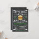 Grillen und kühlen wir mit den phantastischen Chalkboard Hinterhof Grill GRILLEN Party Einladungen. Ein großer Hamburger und Spatulas mit lustiger Typografie auf einem Kalkboard-Hintergrund. Eine grobe Textur, wenn auf der oberen Hälfte der Abbildung. Handgezeichnete Illustration von McBooboos.