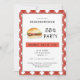 Nachbarschaftsblock-Einladung mit Aquarellbild eines Hamburgers mit kariertem Gingham-Rahmen in Rot und Weiß. Ideal für Outdoor-Veranstaltungen wie Family Picnic, Wiedersehen, Geburtstag, Ruhestand Party.
