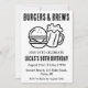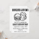 Feiern Sie Ihren besonderen Tag mit einem Grill im Garten und viel Beifall! Die rustikale Einladung mit köstlichen Hamburgern und kaltem Bier ist perfekt für eine Geburtstagsfeier mit Erwachsenen. Das Design beinhaltet die Stichworte "jubeln", "biers" und "backyard", um Ihnen die perfekte Einladung für Ihre Feier zu bieten.