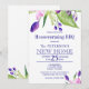 Blumenelegante Frühjahr-, Sommer- oder Herbstwohnung Party oder Grillen stilvolle Einladung auf weißem (bearbeitbarem) Hintergrund mit Aquarellbouquets von rot rosa, pflaumenviolett und lila lila Blumen und Blüten mit Salbei grünen Blätter.