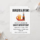 Feiern Sie Ihren besonderen Tag mit einem Grill im Garten und viel Beifall! Die rustikale Einladung mit köstlichen Hamburgern und kaltem Bier ist perfekt für eine Geburtstagsfeier mit Erwachsenen. Das Design beinhaltet die Stichworte "jubeln", "biers" und "backyard", um Ihnen die perfekte Einladung für Ihre Feier zu bieten.