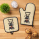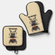 Mitt und Pothalter aus dunklem Elfenbeinofen verfügen über einen Grill mit GRILLEN und Ohrhörnern.
