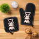 Der schwarze Ofenhalter mit Mitt und Topfhalter ist mit einem GRILLEN-Grill mit Ohrhörnern und -beinen ausgestattet. Perfektes Geschenk für den Tag des Vaters oder für seinen Geburtstag.