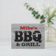 GRILLEN Party Einladung Postkarten | Holzplatte. Ändern Sie die Menge, um den günstigsten Preis pro Karte zu erhalten. Personalisierbarer Einladungstext auf der Rückseite. Ihr Name barbeque und Grill. Spaß beim Kochen im Freien.