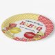 Grillen über das Geschlecht Rot-Gelb-Gingham-Baby Pappteller