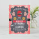 Sie suchen eine Teilchalkboard-Geburtstagseinladung für eine Kindergeburtsfeier? Diese Vorlage könnte das sein, was Sie brauchen. Der gesamte Text kann bearbeitet werden, sodass er eine sehr flexible Vorlage ist. Auf der Vorderseite der Einladung befinden sich ein gescannter Rahmen, ein schwarzer Sash und ein kariertes rotes Muster. Diese für ein Zeitalter passende GRILLEN-Geburtstagseinladung ist personalisiert. Dieses Design ist ideal für ein Party im Hinterhof GRILLEN.