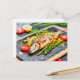 Grillfisch mit Spargel und Tomaten Feiertagspostkarte