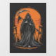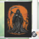 This dark cartoon-style artwork features a grim reaper in a tattered black robe standing in a desolate graveyard at sunset. The skeletal face, long scythe, and orange sky create an ominous mood with graphic novel vibes. A mix of eerie and playful tones makes it perfect for fans of dark art, gothic themes, and mysterious atmospheres.