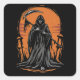 Grim Reaper Cartoon in Sunset Graveyard Quadratischer Aufkleber