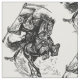 Grimmiges Sensenmann-Pferd, das einen Schwanz hält und auf dem Pferd sitzt. Dunkler Reiter des Todes. Pferd im Galopp. Illustration