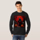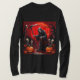 Eine abschreckende Darstellung des grimmigen Sensenmanns inmitten von Kürbis, Schädeln und kargen Bäumen unter dem Glühen eines roten Mondes. Ideal für Halloween-Themen und für unheimliche Herbstabende.