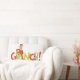 This vibrant and bold graphic is the perfect logo for the holiday mischief-maker! The word "GRINCH!" is displayed in large, stylized letters, primarily in festive red and lime green. The Grinch himself (in his Santa suit) stands right over the letters with his hands on his hips, looking mischievously proud. Beside him, his loyal partner, Max the Dog (complete with reindeer antlers), sits patiently. This fun graphic is a great way to celebrate the iconic characters and their story!