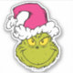 Diese fantastische, kühne Illustration ist ein Nahporträt des Grinch in vollem Schalk-Modus! Er hat sein charakteristisches schlaues Grinsen und leuchtend gelbe Augen, aber sein Look ist mit einem großen, flauschigen Santa-Hut in einer lustigen, unerwarteten rosa/fuchsia Farbe anstelle des traditionellen Rot aufgefrischt. Diese Grafik ist perfekt für jeden, der die Feiertage liebt, aber einen nicht-traditionellen, erfreulich mürrischen und farbenfrohen Stil bevorzugt!