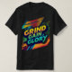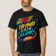 Dieses lebendige und energetische Design zeichnet sich durch den motivierend Satz "Grind, Gain, Glory" in einem kühlen, mehrfarbigen Schriftart aus. Der Text ist mit dynamischen Linien und Formen stilisiert und schafft ein Gefühl von Bewegung und Energie. Die Ästhetik ist modern und auffallend, sodass sie sich ideal für einen T - Shirt oder eine andere Kleidung eignet.