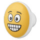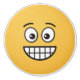 Ein Gesicht mit offenen Augen und einem großen offenen (grinsenden) Mund, das Zähne zeigt.
