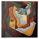 Juan Gris Malerei: Flasche, Weinglas und Obst.
