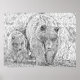 Grizzlybär & Cub Grau-Maßstab abstrakte Färbung Poster
