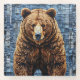 Lebhafte Kunstwerke, die einen Bären mit einem reichhaltigen, strukturierten Pelzmantel darstellen, Set vor einem Flickwerk in Blau- und Grautönen. Der Bär ist imposant und lebensecht und erobert die Aufmerksamkeit mit seinen realistischen Merkmalen.