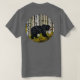 Stilvoll schwarzer Bär, der durch einen Wald geht. Der Bär ist in einer dunklen Farbe dargestellt, mit Texturen, die sein Fell betonen. Im Hintergrund stehen große Birken mit weißer Rinde, die das natürliche Ambiente verbessern. Der Boden ist mit einem grünen Moos bedeckt und bietet einen schönen Kontrast. Die Gesamtkomposition ist rund und schafft eine harmonische und ruhige Waldlandschaft. Der Bär scheint in Bewegung zu sein und fügt der ruhigen Umgebung ein dynamisches Element hinzu.