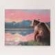 Dieses Puzzle aus dem Grizzly-Bären mit seinen Gemälden am See bietet eine friedliche Szene eines braunen Bären, der bei Sonnenuntergang an einem ruhigen See sitzt. Der Grizzlybär macht vor der Nacht eine Pause und blickt auf die Berge und den in Rosa und Orange gestrichenen Himmel. Eine Erinnerung, immer die Schönheit zu bemerken, die Sie umgibt. Dieses Landschaftsbild wird jedem Outdoor-Fans gefallen, vor allem jenen, die die Liebe haben, die wildere Tierwelt in den abgelegenen Gegenden Amerikas zu beobachten.