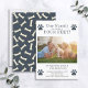 Mit dieser niedlichen Foto-Ankündigungskarte, in der sich Ihr Foto in der Mitte befindet, kündigen Sie Ihr neues Pelzbaby stilvoll an. Niedliche marineblaue handschrift und moderne sans serif typografie verkünden "Unsere familie ist von Four Feet gewachsen!", mit deiner treffen und grüßen einladung unten. Niedliche Aquarellpasten zieren die Vorderseite, und die Rückseite weist ein komplett wasserfarbenes Knochenmuster auf marineblau auf. Copyright Elegant Invites, alle Rechte vorbehalten.