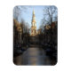 Ein Foto des Groenburgwal Kanals in Amsterdam, Holland. Die Kirche im Hintergrund ist die Kirche Zuiderkerk.