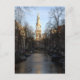 Ein Foto des Groenburgwal Kanals in Amsterdam, Holland. Die Kirche im Hintergrund ist die Kirche Zuiderkerk.