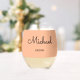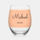 Dieses stillose, minimalistische Weinglas besticht durch ein stilvolles Design auf pfirsichfarbenem Hintergrund. Personalisieren Sie mit dem Namen des Bräutigams, der in eleganter Schriftzeichen angezeigt wird.